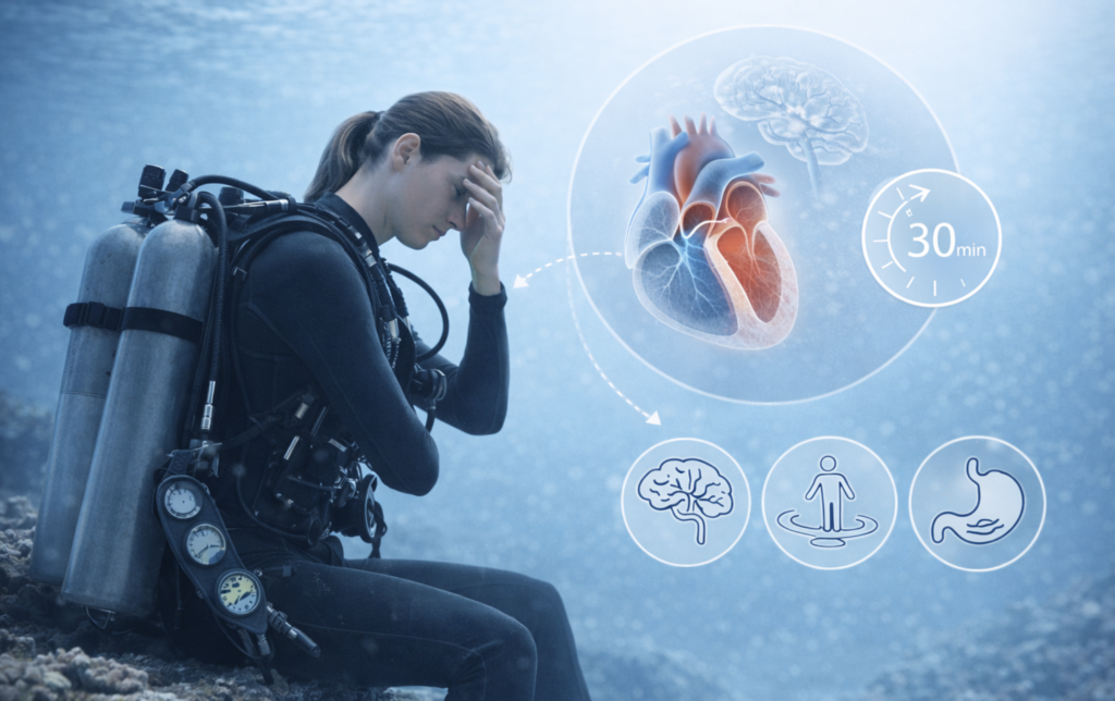 ca. 30 min nach dem Tauchgang Auftreten von starken Schwindel, Gangunsicherheit und Übelkeit mit Erbrechen…